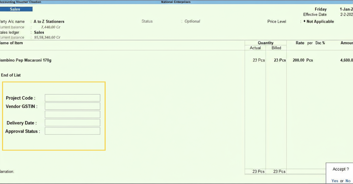 By customizing Tally prime with relevant fields, businesses can gain a competitive edge by leveraging data-driven insights to improve their operations, make better decisions, and achieve their strategic goals.